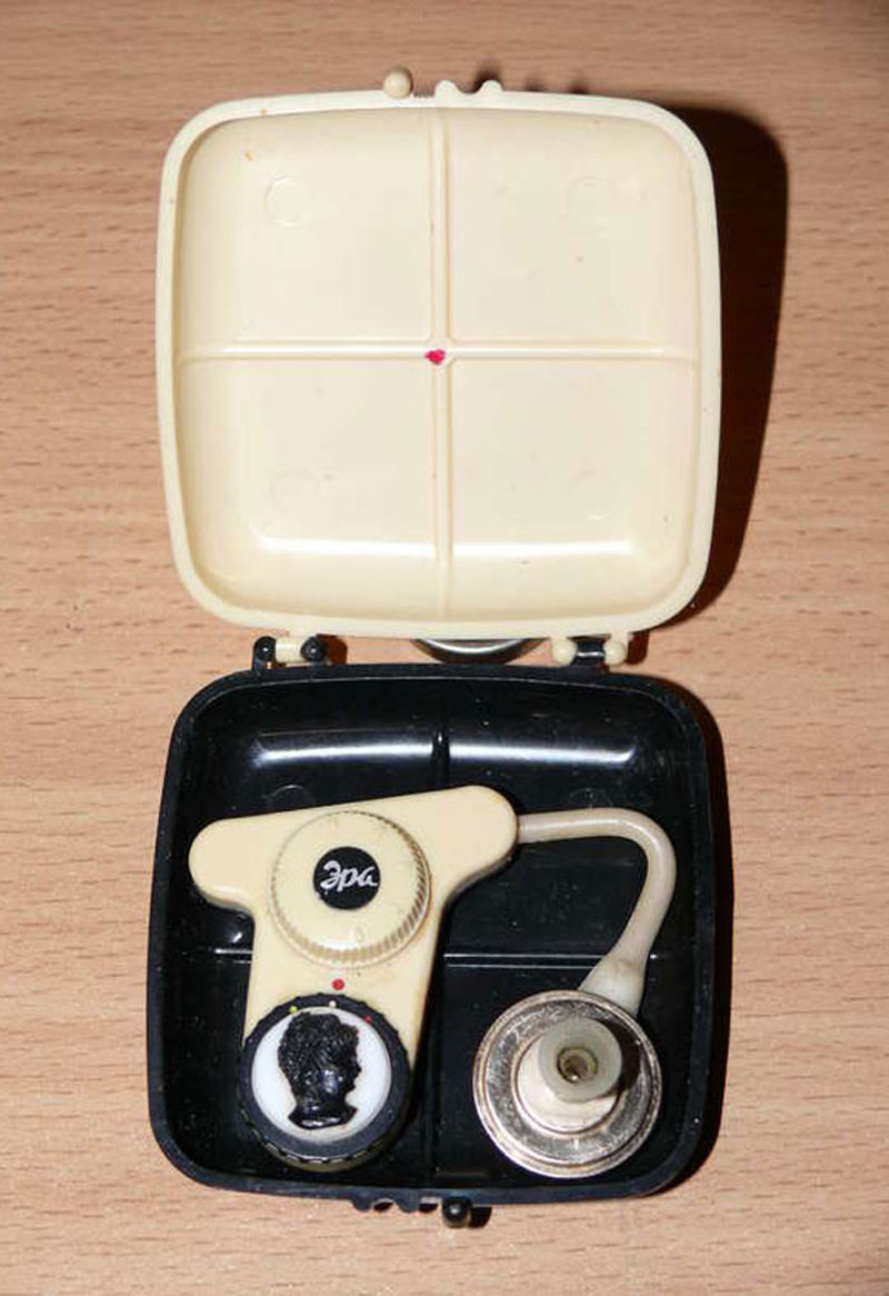 оформлен в виде серьги, а приёмник ''Маяк-1'' в виде броши. Радиоприёмники