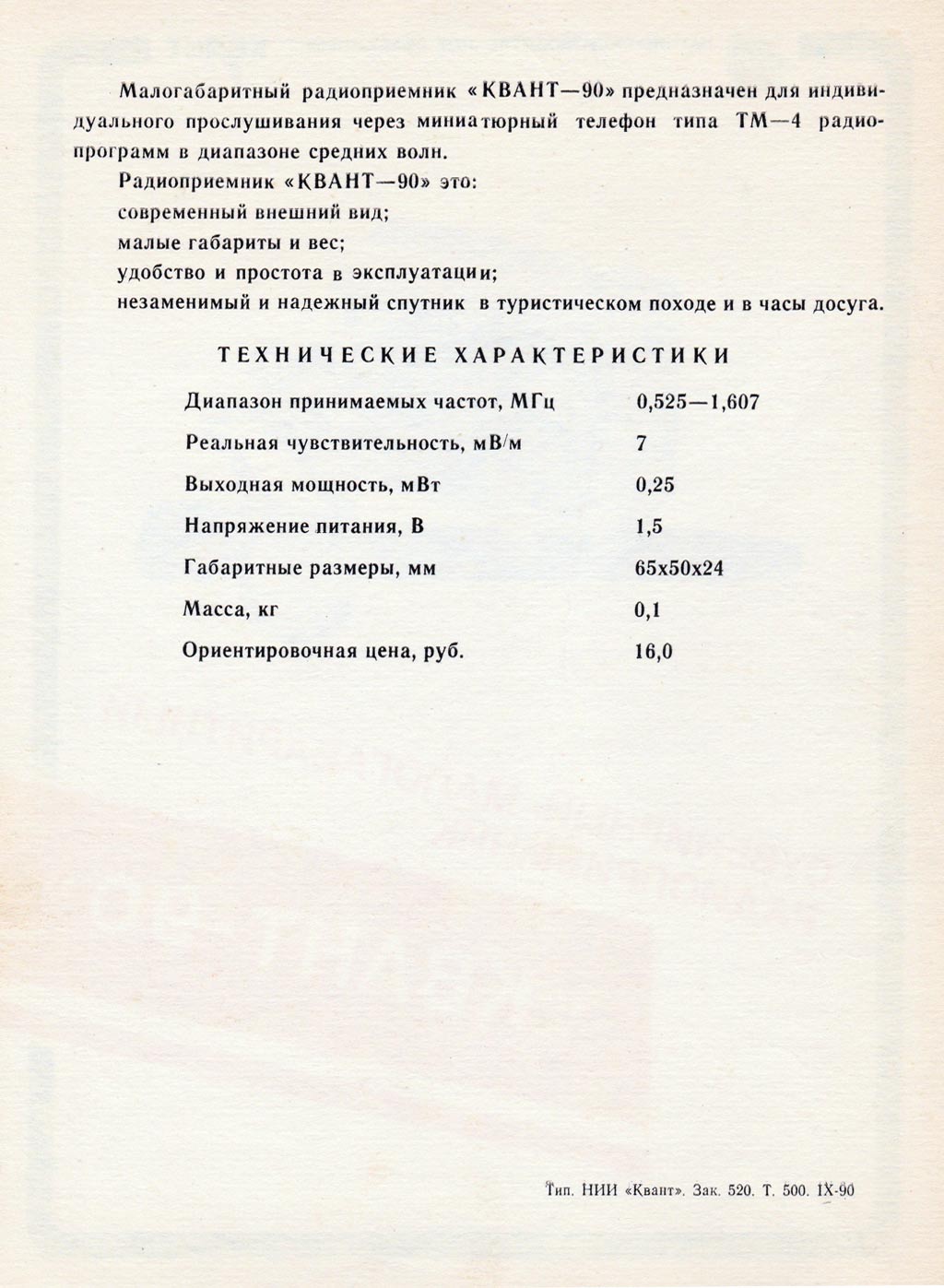 подготовлен к выпуску с 1991 года Киевским НПО "Квант". Диапазон