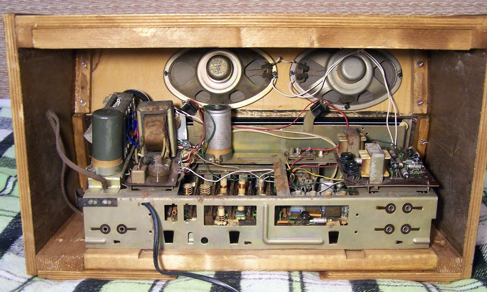 от сети или батарей. Он создан на базе радиолы ''Эфир-М''. Диапазоны: ДВ,