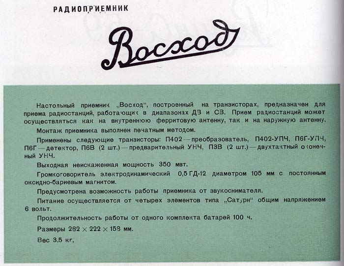 транзисторный радиоприёмник "Восход" с мая 1958 года выпускал Владивостокский