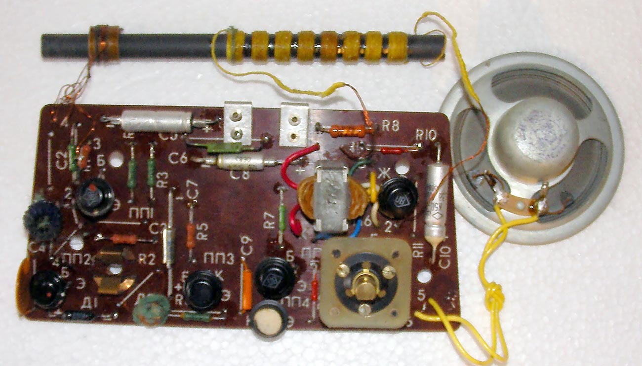 завод. Приёмник собран по схеме прямого усиления на 4-х (позже на 5-ти)