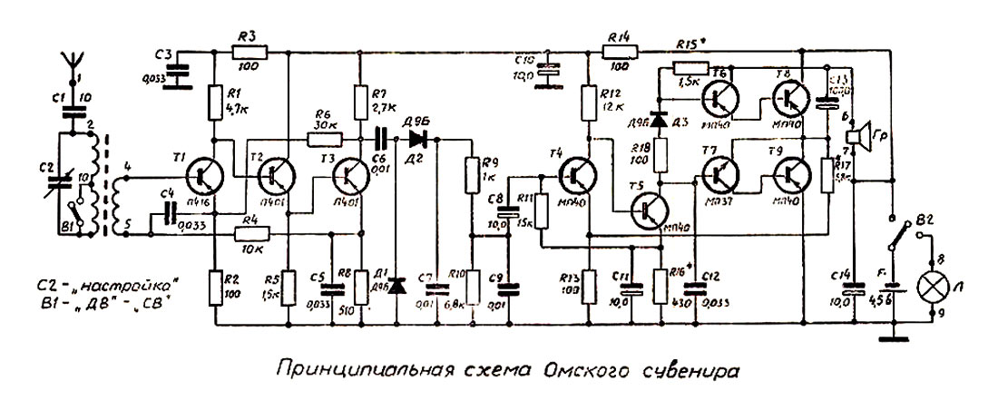 схема, конструкция и параметры "Омского сувенира" менялись. Сначала это