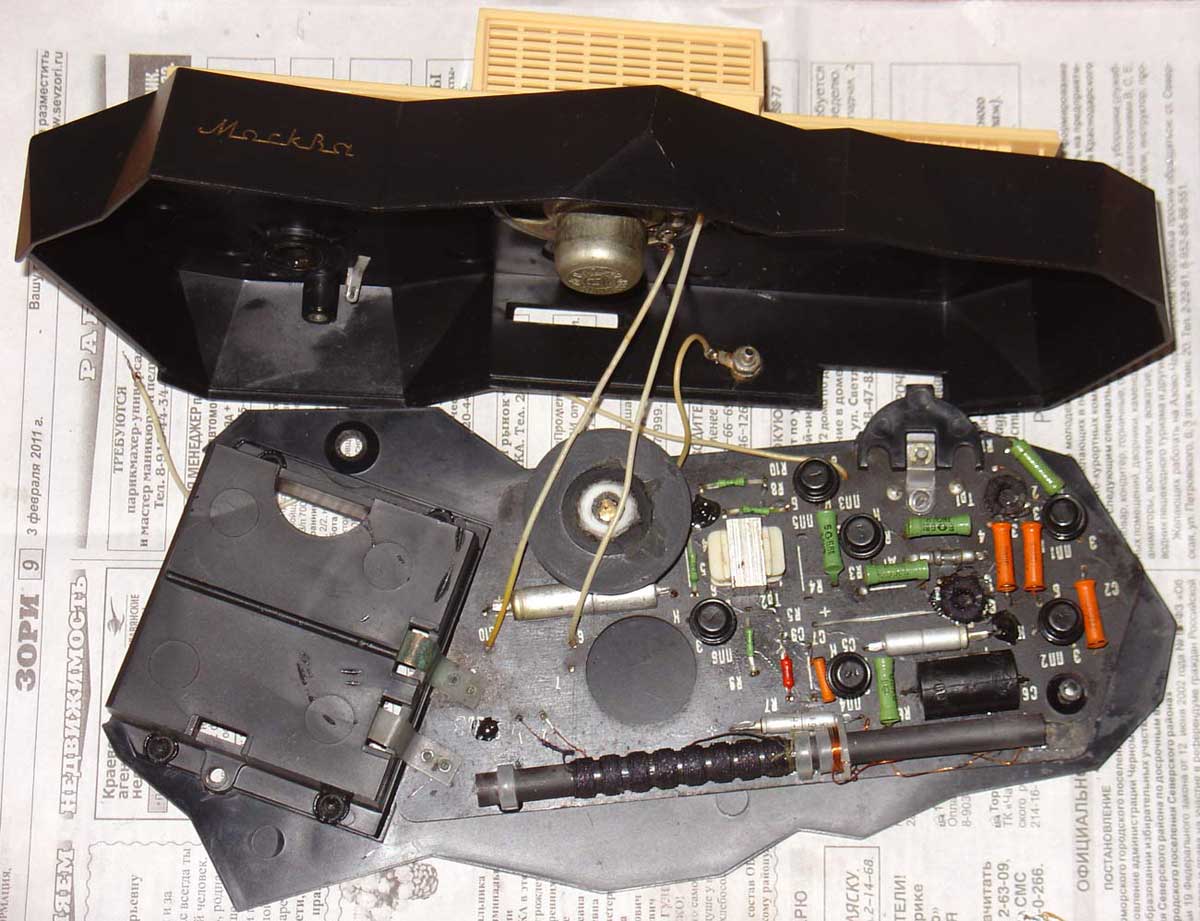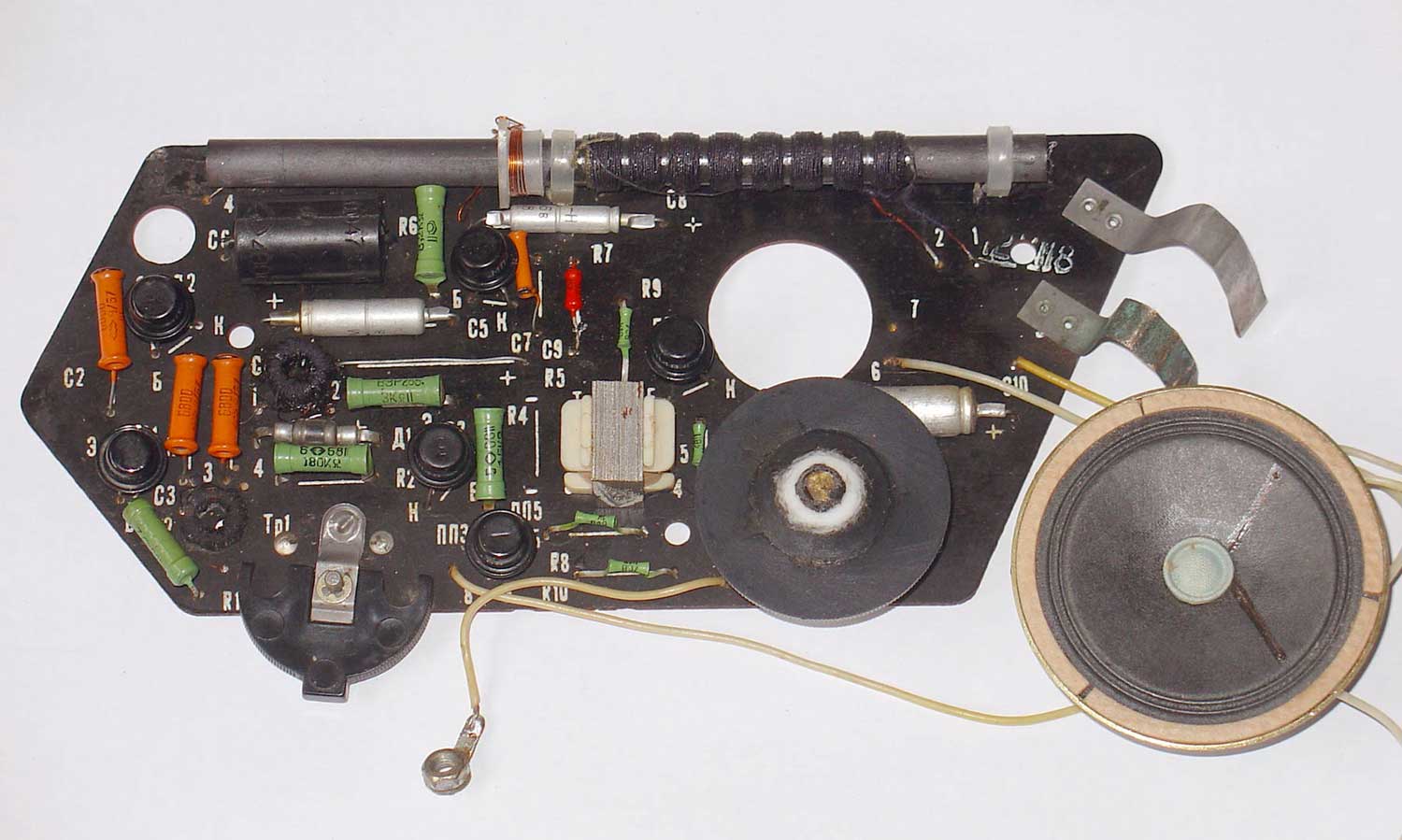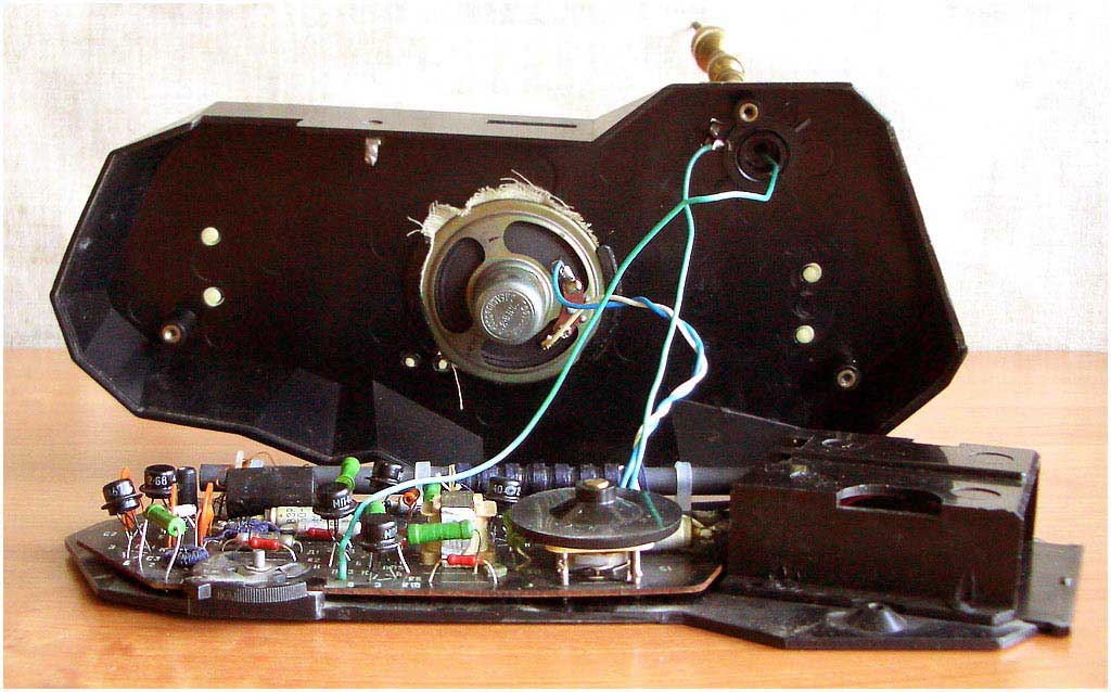 В сувенире установлен радиоприёмник прямого усиления, собранный на шести
