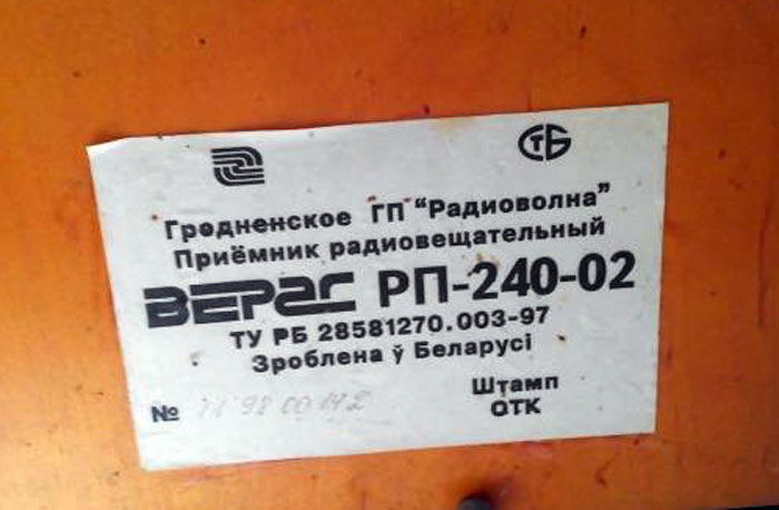 радиоприёмники "Верас РП-240", "Верас РП-240-01" и "Верас РП-240-02" соответственно