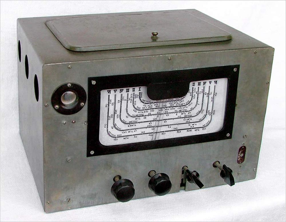 панели приёмника расположена шкала отградуированная в метрах, килогерцах