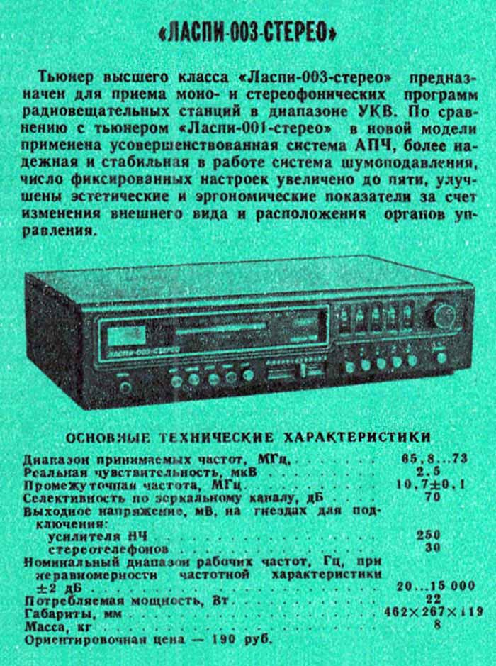 Тюнер "Ласпи-003-стерео" с 1978 года