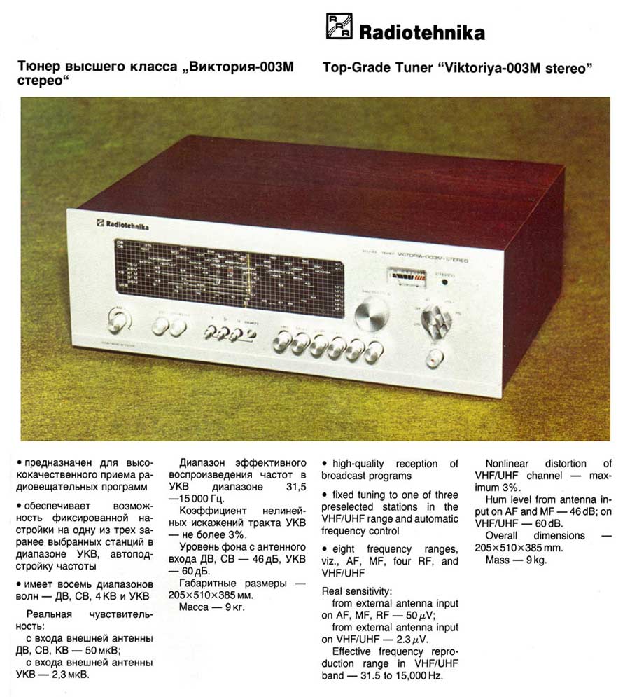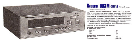 транзисторный тюнер высшего класса "Виктория-003М" с 1981 года малосерийно