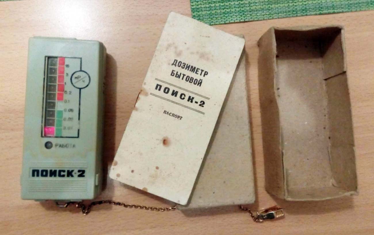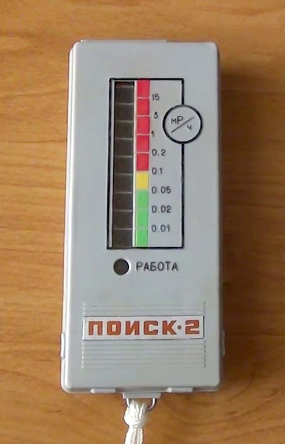 Дозиметр бытовой "Поиск-2" выпускался с 1990 года. Индикатор мощности дозы гамма-излучения и поверхностного загрязнения бета активными веществами. Видеосюжет.