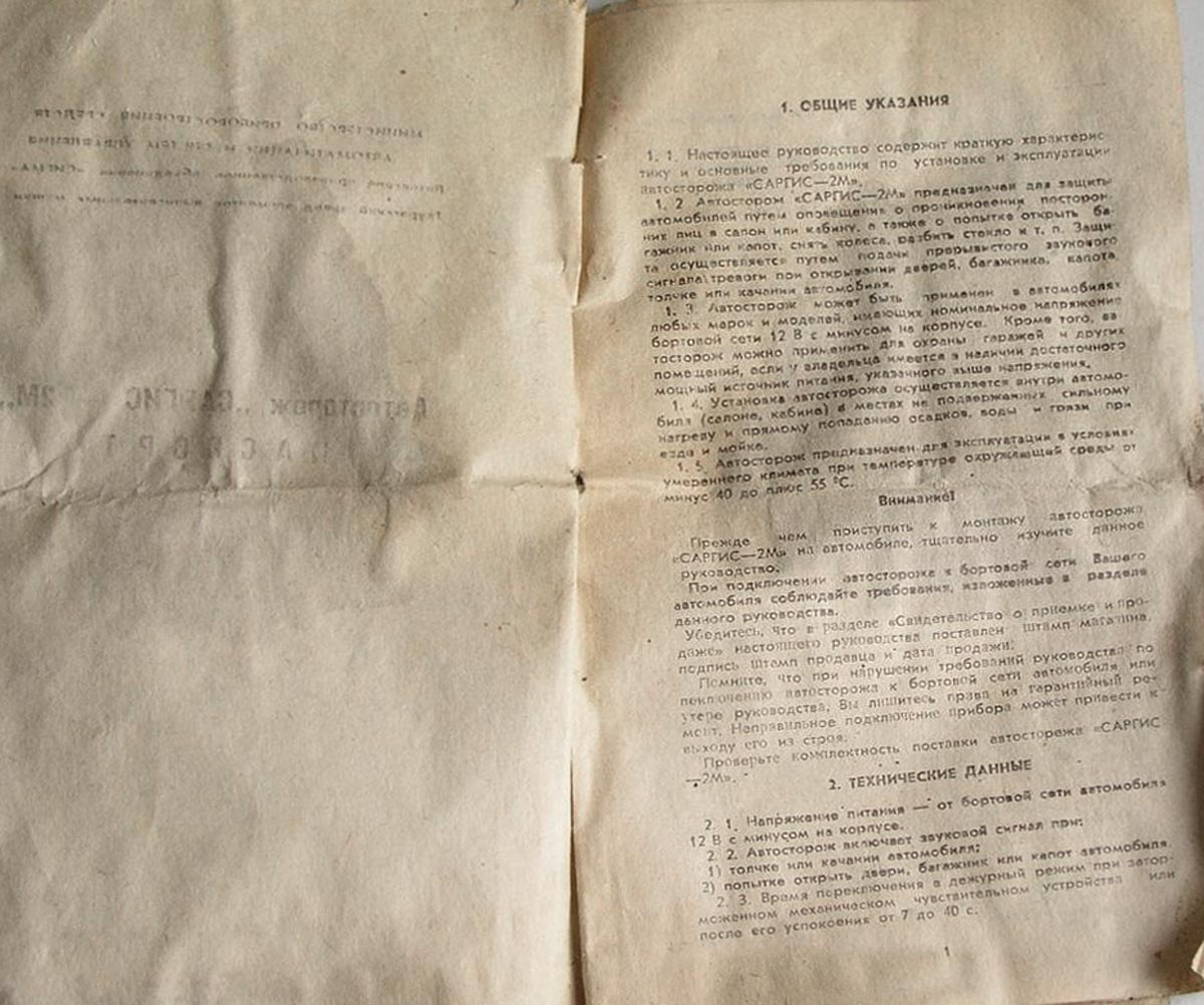 Автомобильное охранное устройство "Саргис-2М" выпускалось предположительно с 1986 года. Небольшая информация из фотографий устройства.