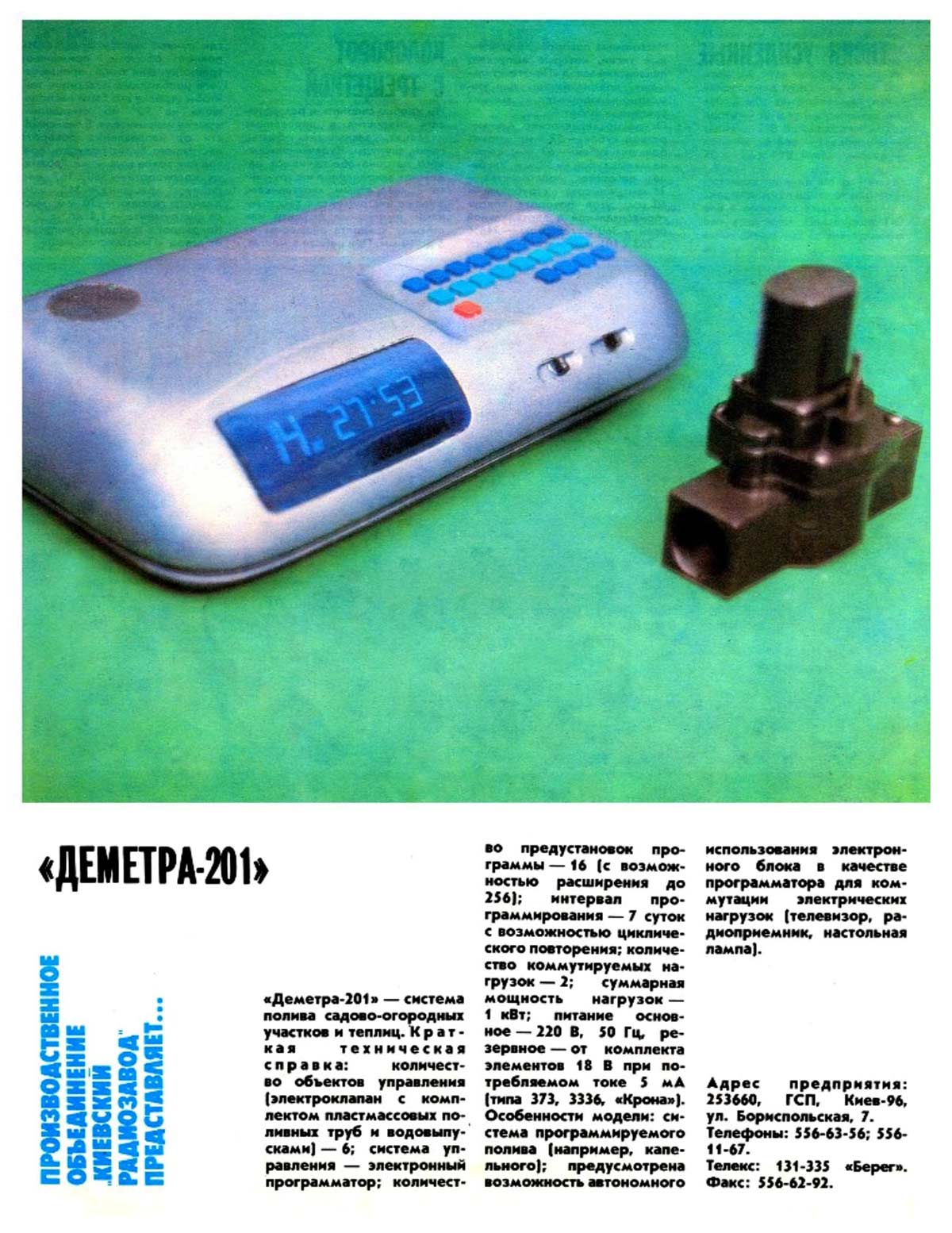 выпуску с 1993 года ПО "Киевский радиозавод". Деметра - богиня плодородия