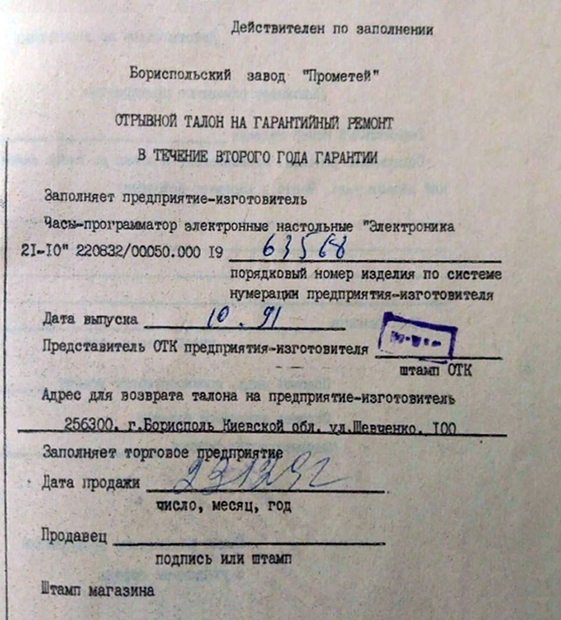 электронные настольные "Электроника 21-10" выпускал с 1991 года Бориспольский
