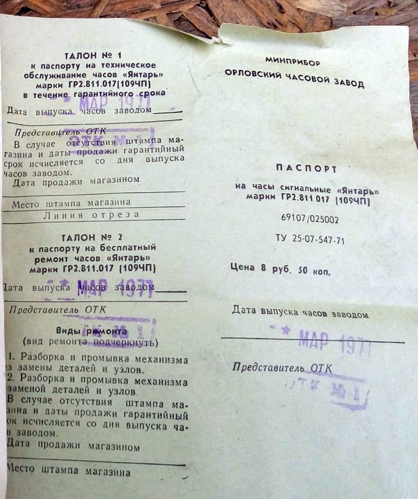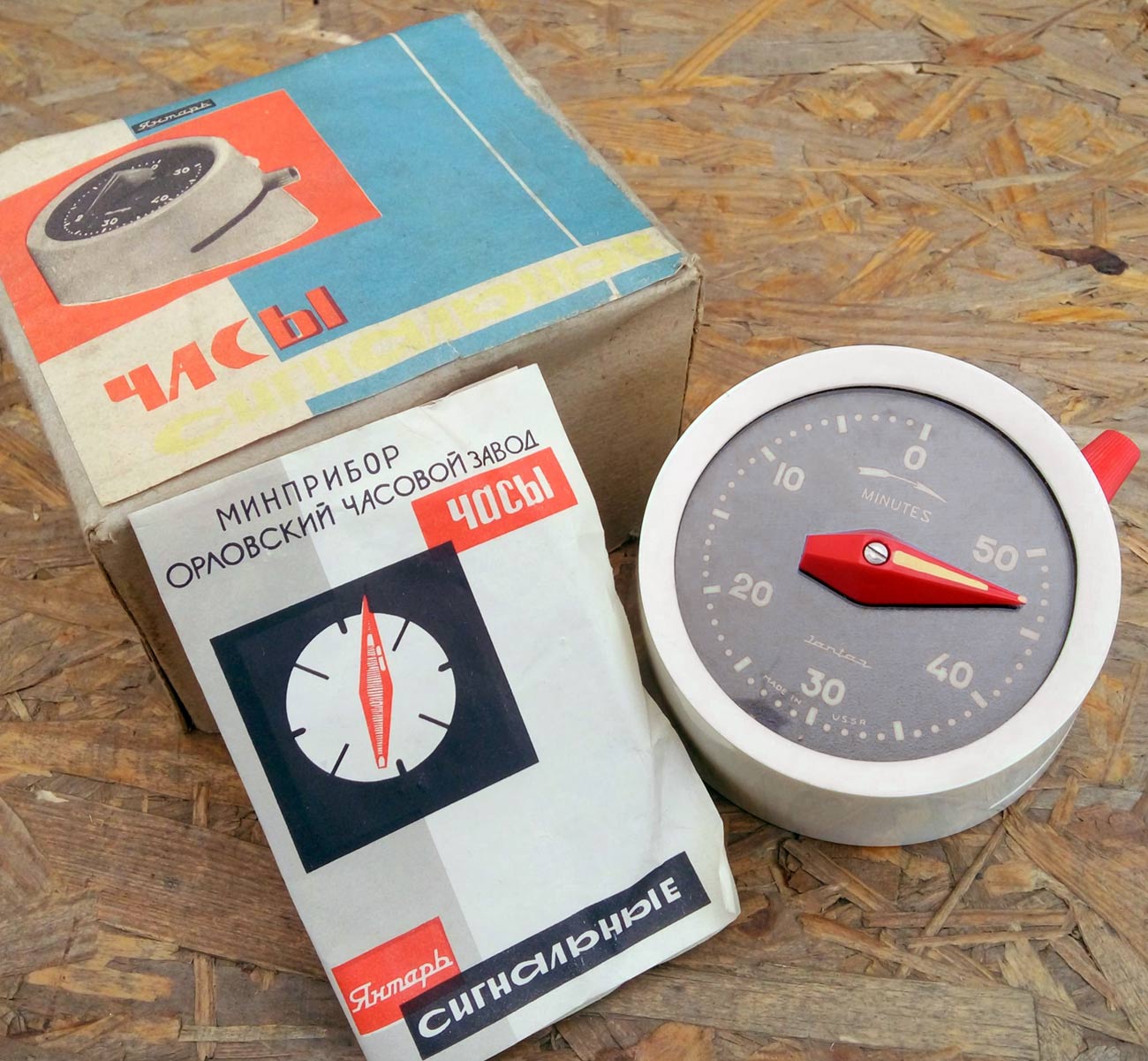 Часы сигнальные "Янтарь" возможно с 1972 года выпускал Орловский часовой завод. Работают как сигнальный таймер в интервале от 1 до 50 мин.