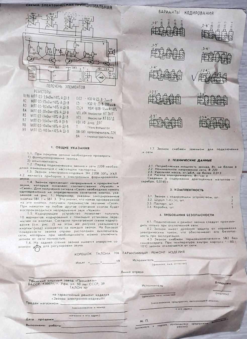 Звонок электронно-кодовый "ЭК" выпускался возможно с 1986 года Уфимским заводом "Промсвязь". Нажатием соответствующих кнопок кода определяется "Свой" или "Чужой". https://www.sovtech.su/.