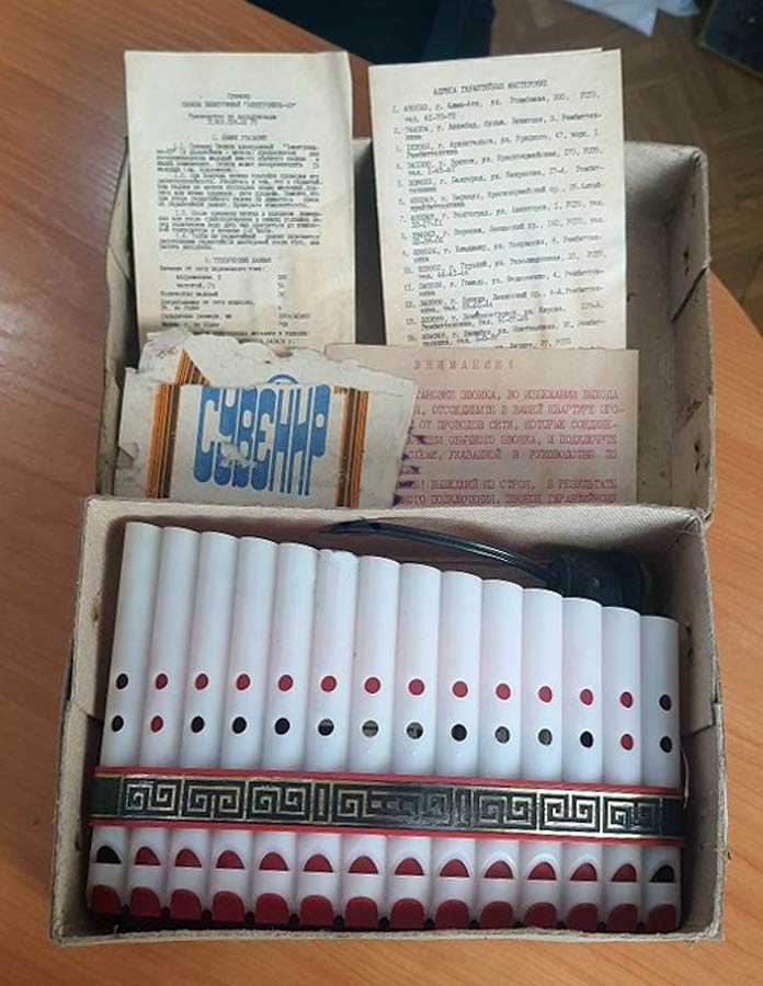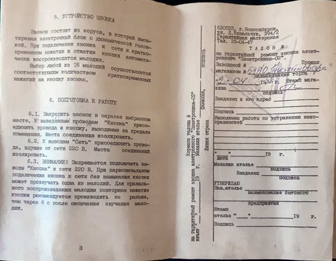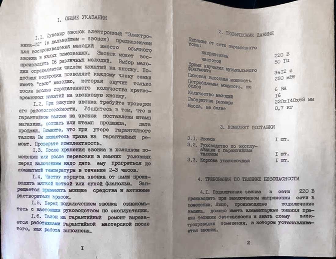 Электронный звонок "Электроника-02" (сувенирный) производился предположительно с 1985 года Новосибирским заводом при НИИ "Восток". Звонок воспроизводит фрагменты 16 мелодий, каждый звонок новый.