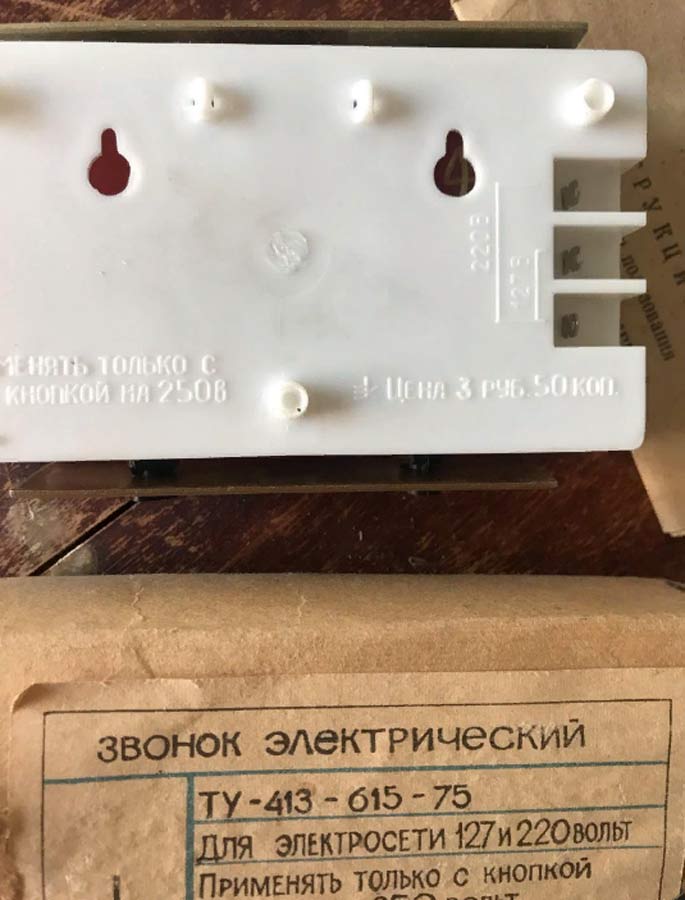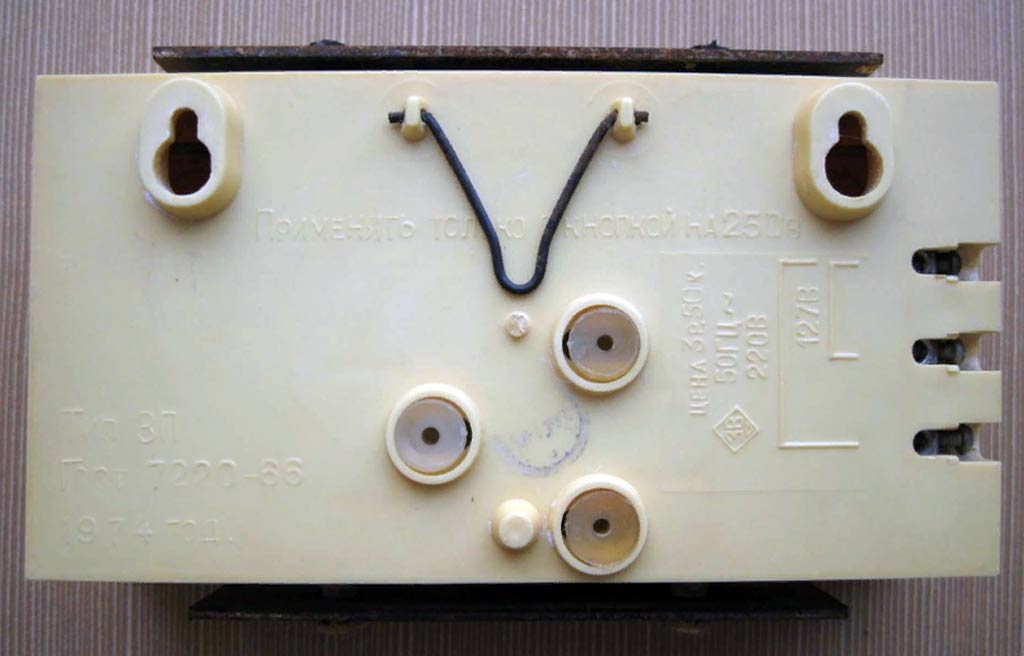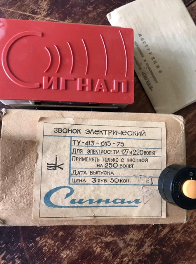 Звонок электрический "Сигнал" (тип ЗП) выпускался предположительно с 1974 по 1990 годы. Служит для оповещения о визите нажатием кнопки. За время производства звонок претерпел несколько модернизаций.