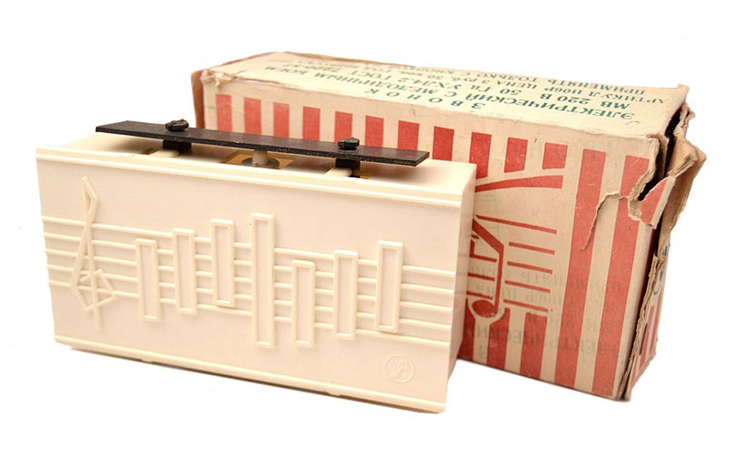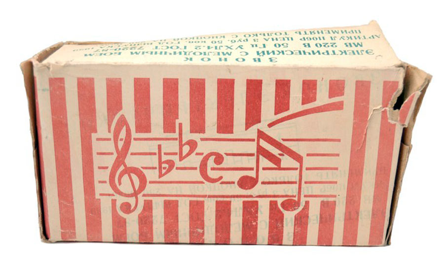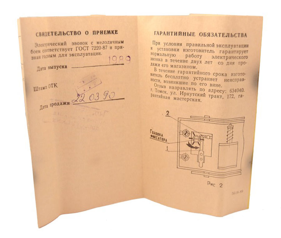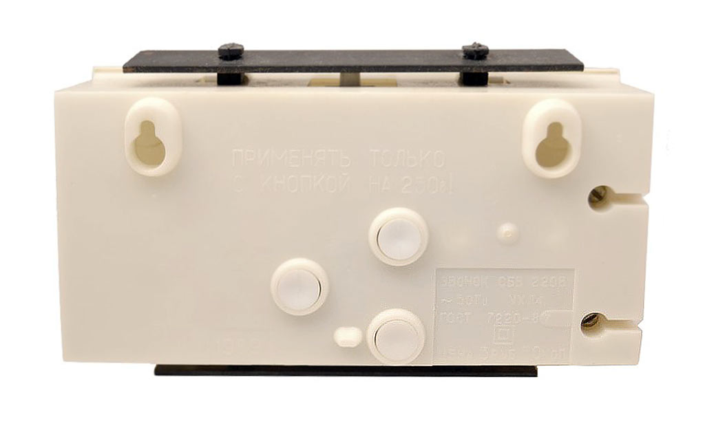 Звонок электрический с мелодичным боем выпускался предположительно с 1987 года в городе Томске. Информация только визуальная, в фотографиях.