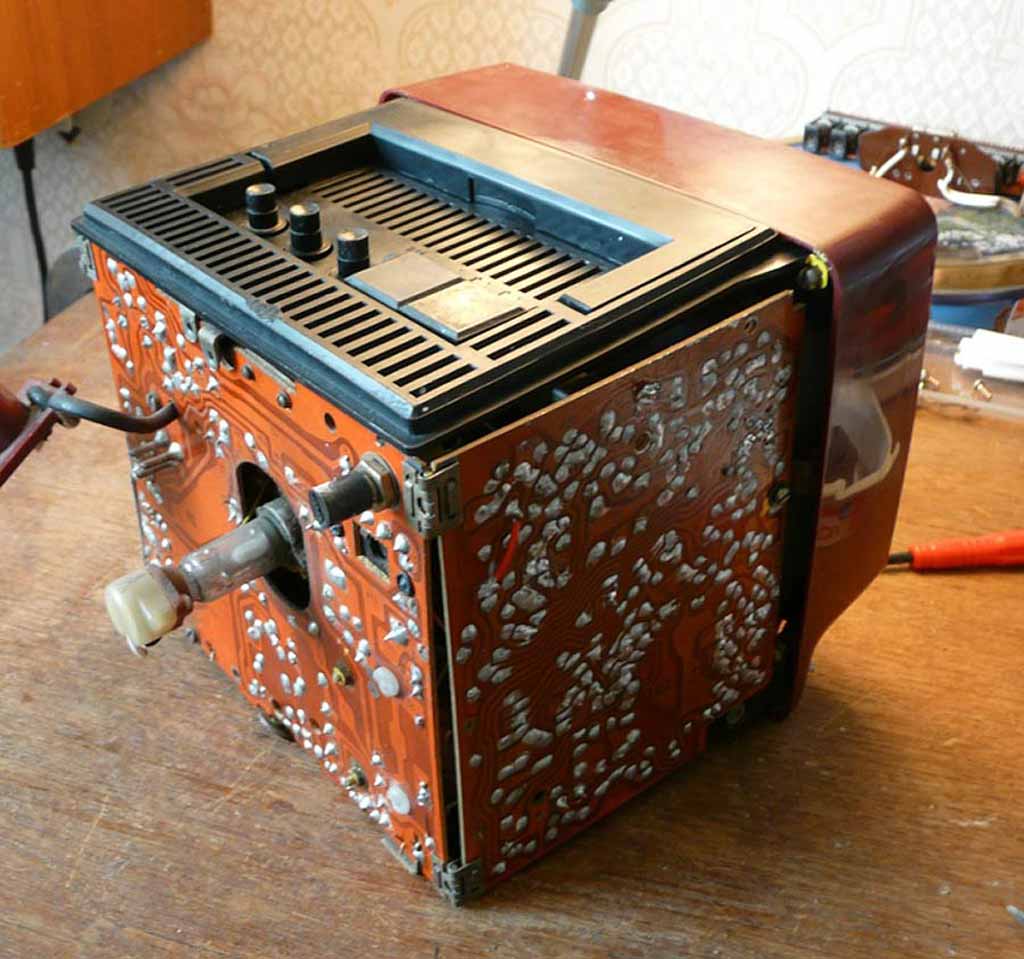 корпусе. Монтаж печатный, выполнен на трех поворотных платах. В телевизоре