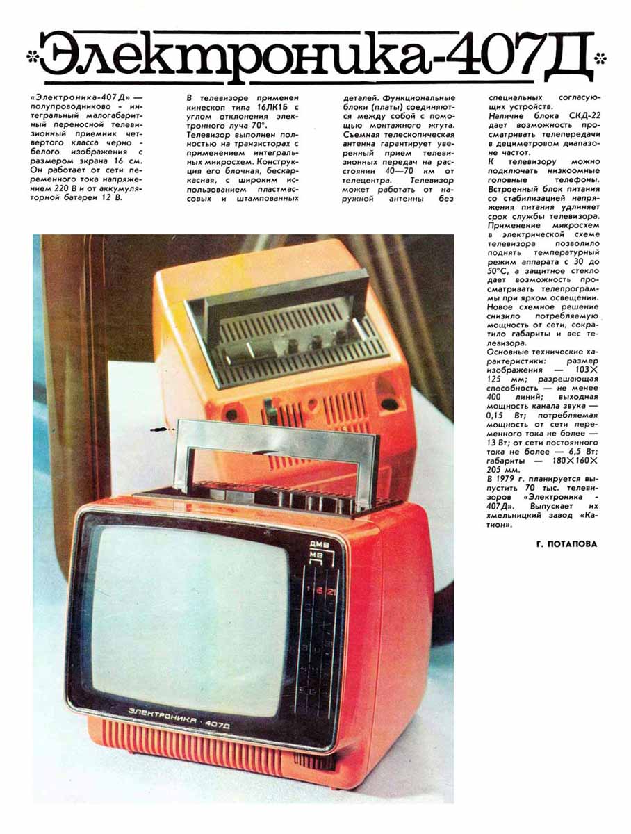 года выпускало Хмельницкое ПО "Катион". ''Электроника 407/Д'' - это малогабаритный