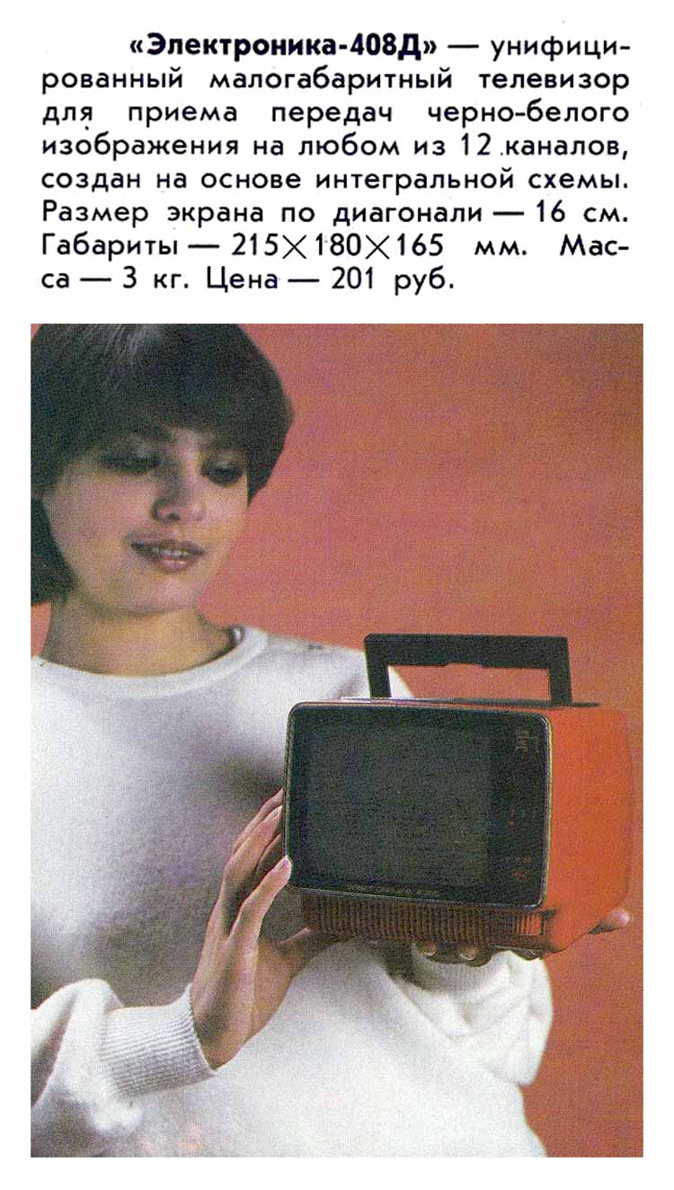Переносной телевизор с применением интегральных микросхем ''Электроника-408Д''