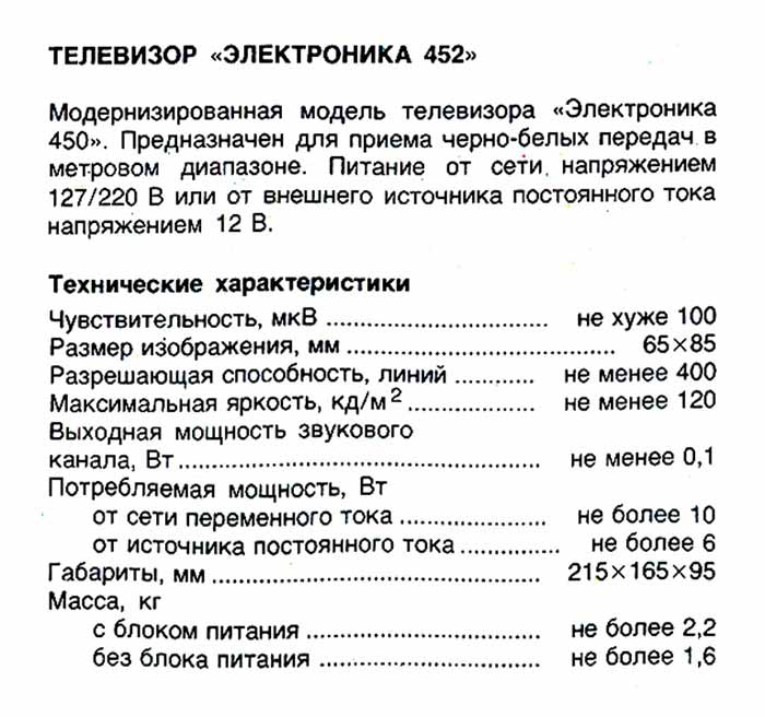 Воронежским заводом "Видеофон". Телевизор "Электроника-452" (тип ПИТ-11-3)