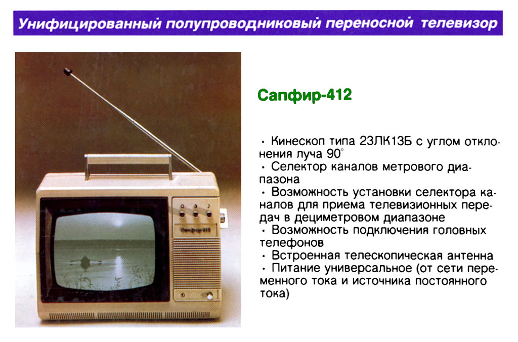 полупроводниково-интегральный телевизор ''Сапфир-412'' работает в МВ диапазоне,