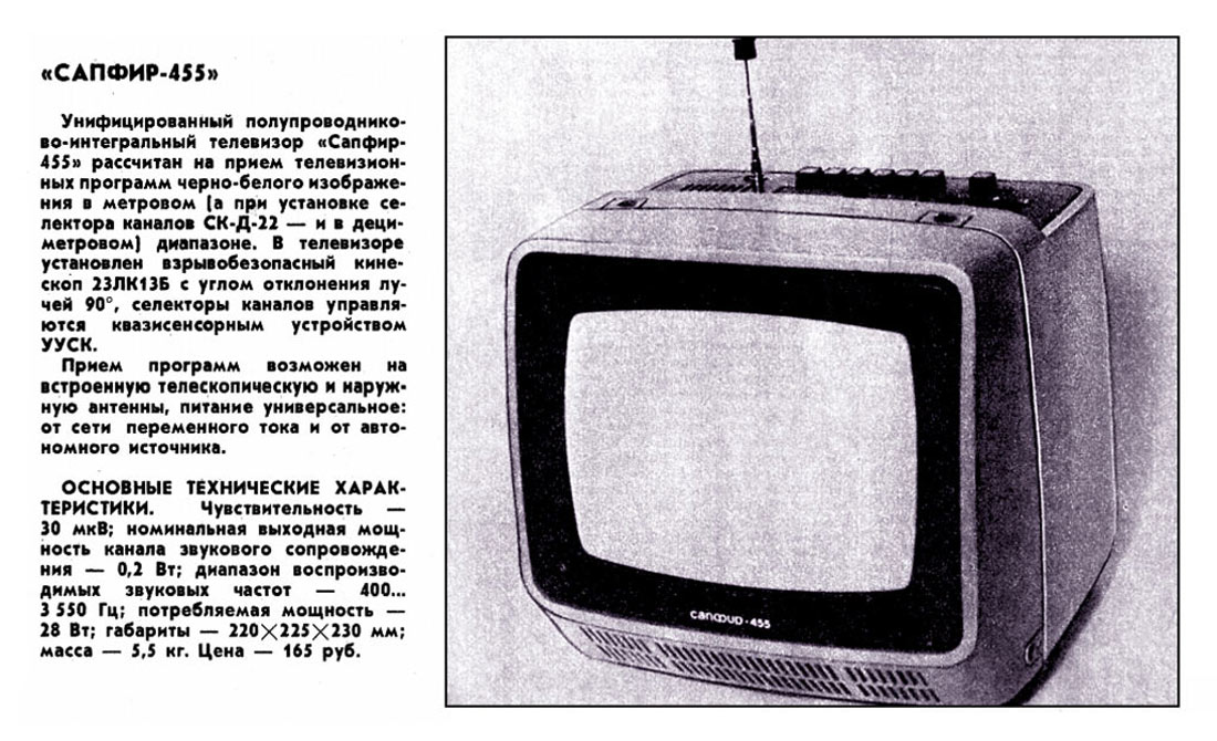приёмник чёрно-белого изображения "Сапфир-455" с 1987 года опытно выпускало