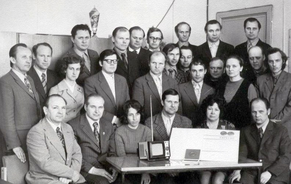 его установки. На первой фотографии телевизор "Шилялис-401/Д" и его разработчики