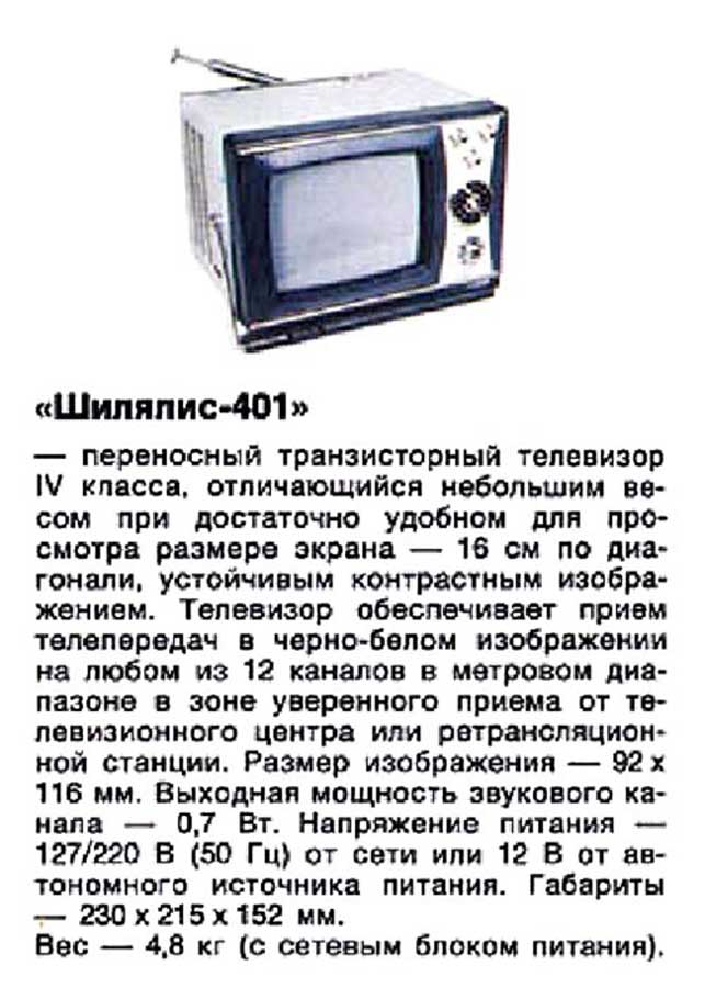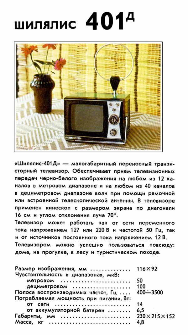 выпуск. Малогабаритный переносный транзисторный телевизор 4-го класса ''Шилялис-401''