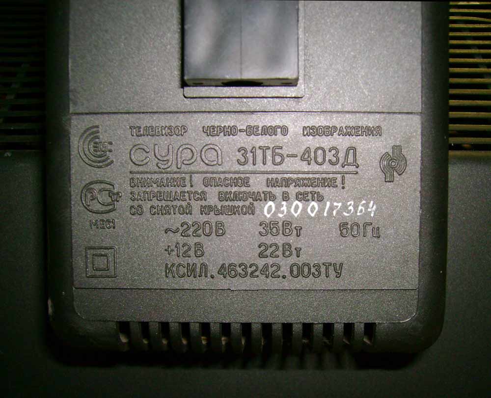 приёмник чёрно-белого изображения "Сура 31ТБ-403Д" с 1998 года выпускало
