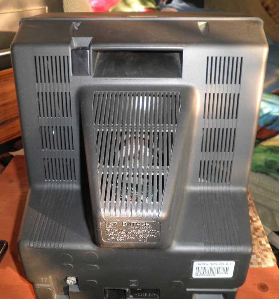 в диапазонах МВ и ДМВ. Диагональ экрана 34 см. Настройка на 90 каналов.