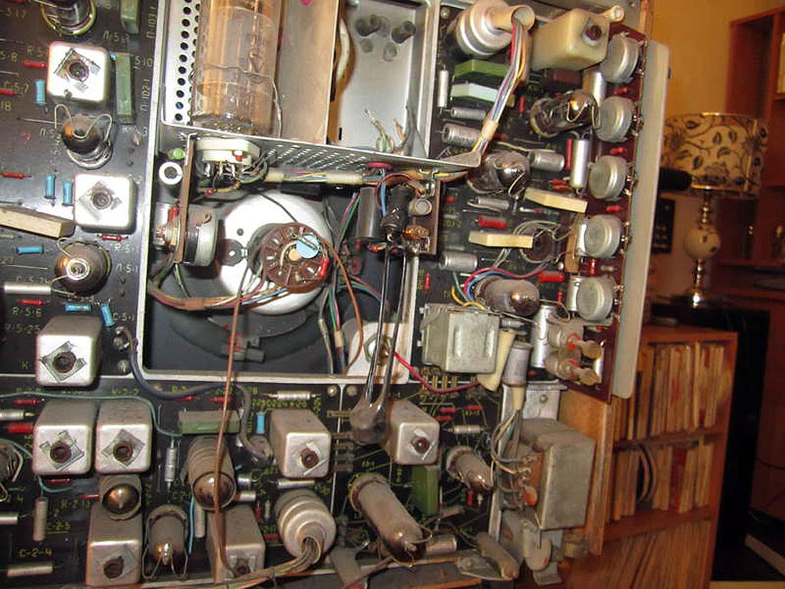 схемой и конструкцией блока строчной развёртки. В модели применено 20 радиоламп