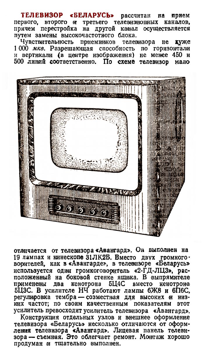 телевизора ''Беларусь'' аналогична телевизору "Авангард". Основные ручки