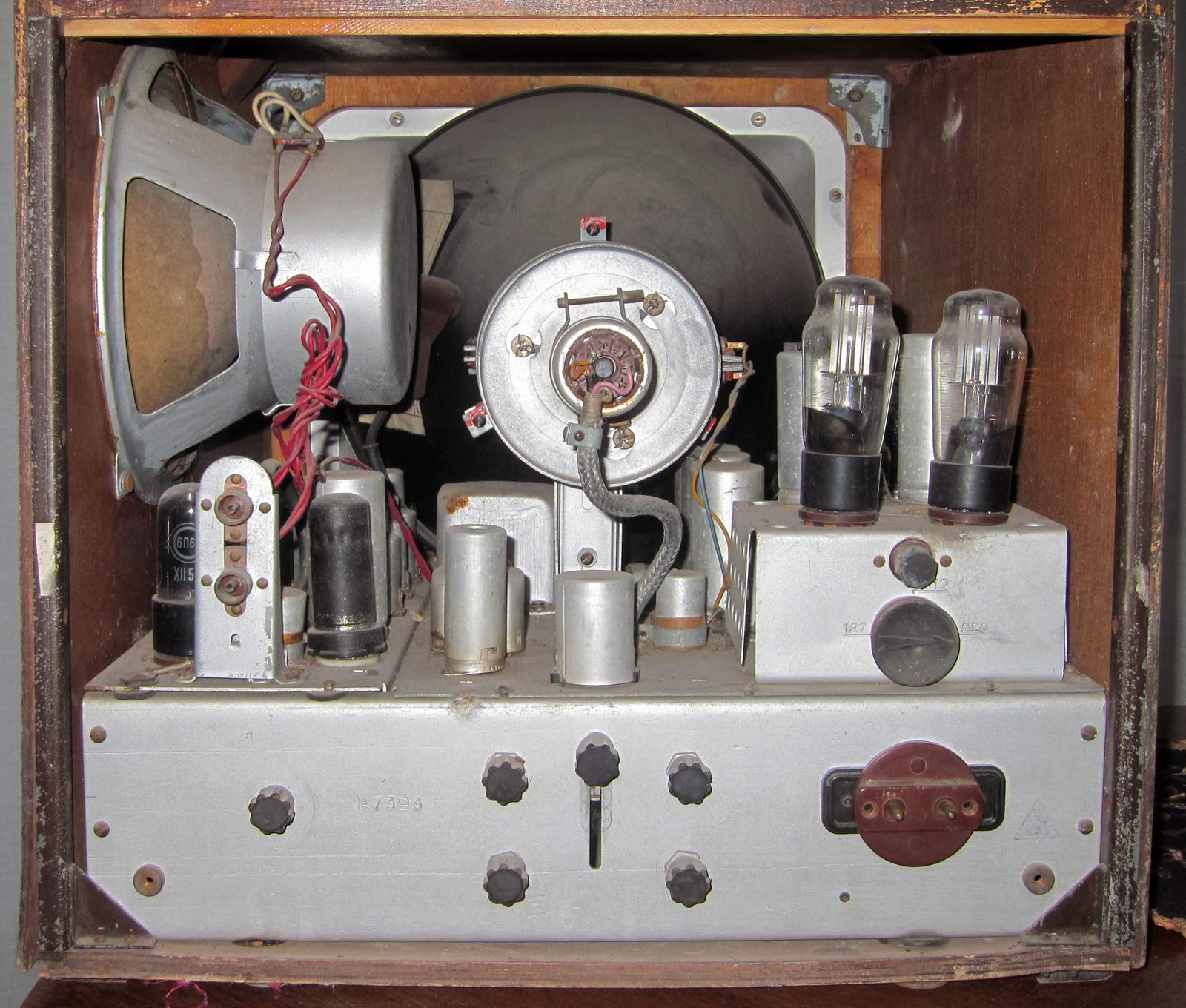 Телевизор имеет 19 ламп и кинескоп типа 31ЛК2Б, с диаметром экрана 31 см