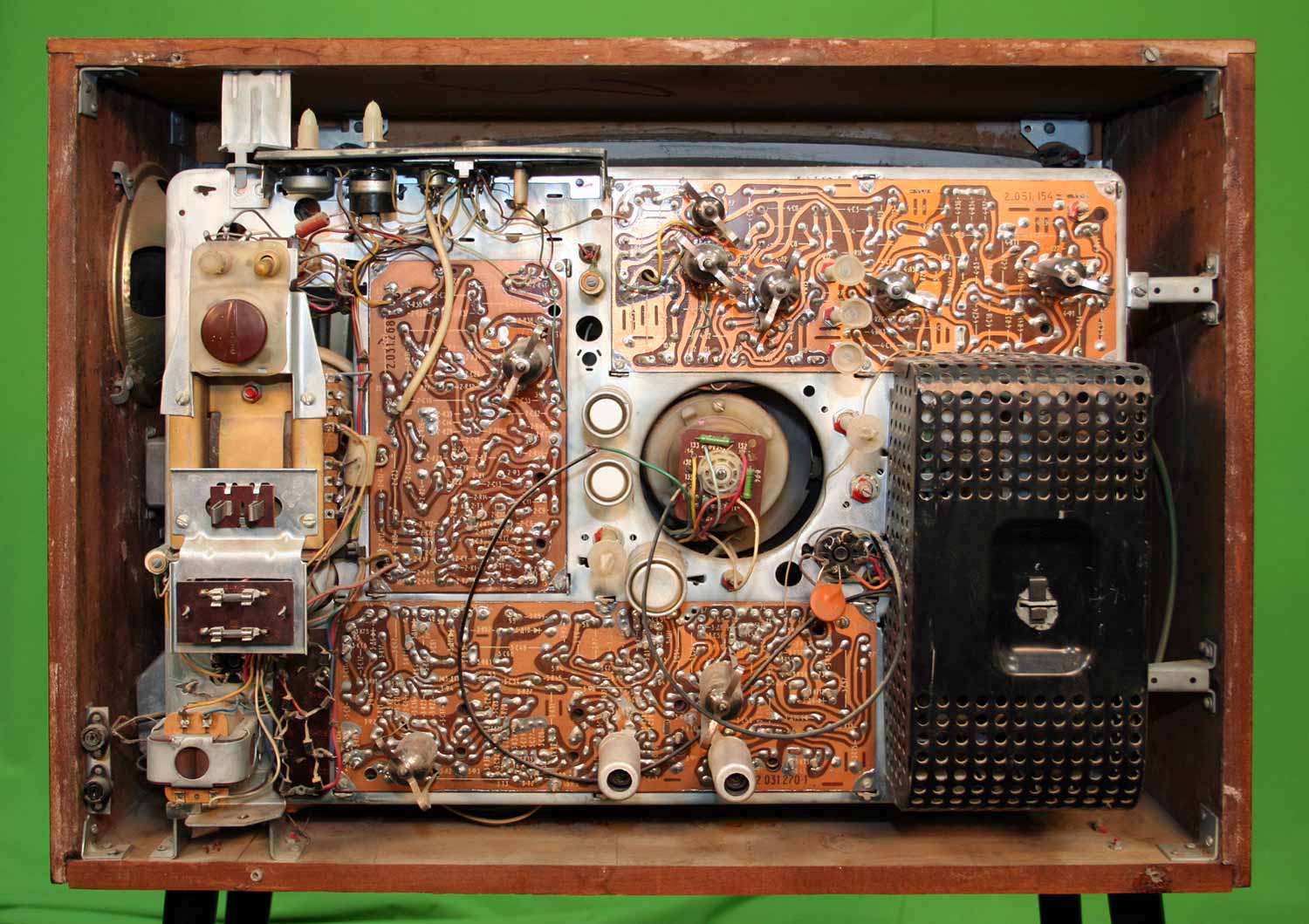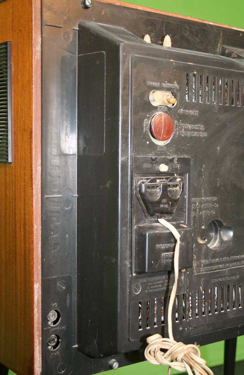 ценными породами дерева и пластмассой. Сзади аппарат закрыт стенкой из