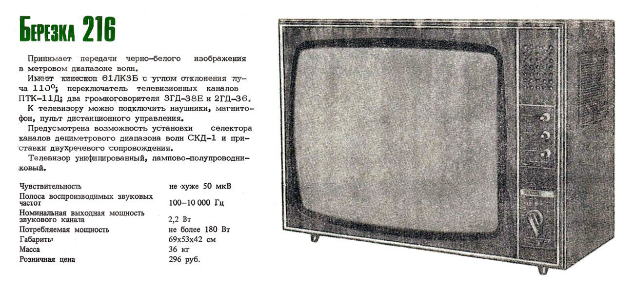 приёмник ч/б изображения "Берёзка-216" с 1982 года выпускало Харьковское
