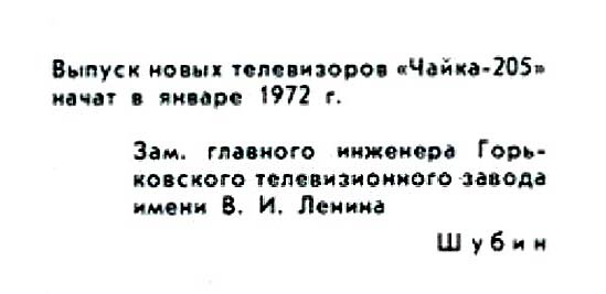 Телевизор "Чайка-205" с 1972 года