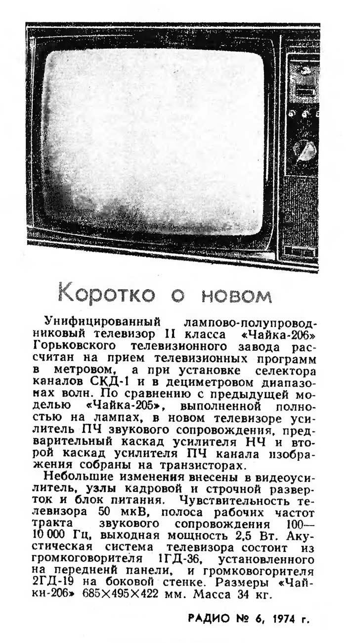приёмник чёрно-белого изображения "Чайка-206" с 1972 года выпускал Горьковский