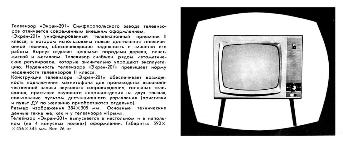 1968 года выпускался телевизор ''Экран-201'' который по оформлению, конструкции