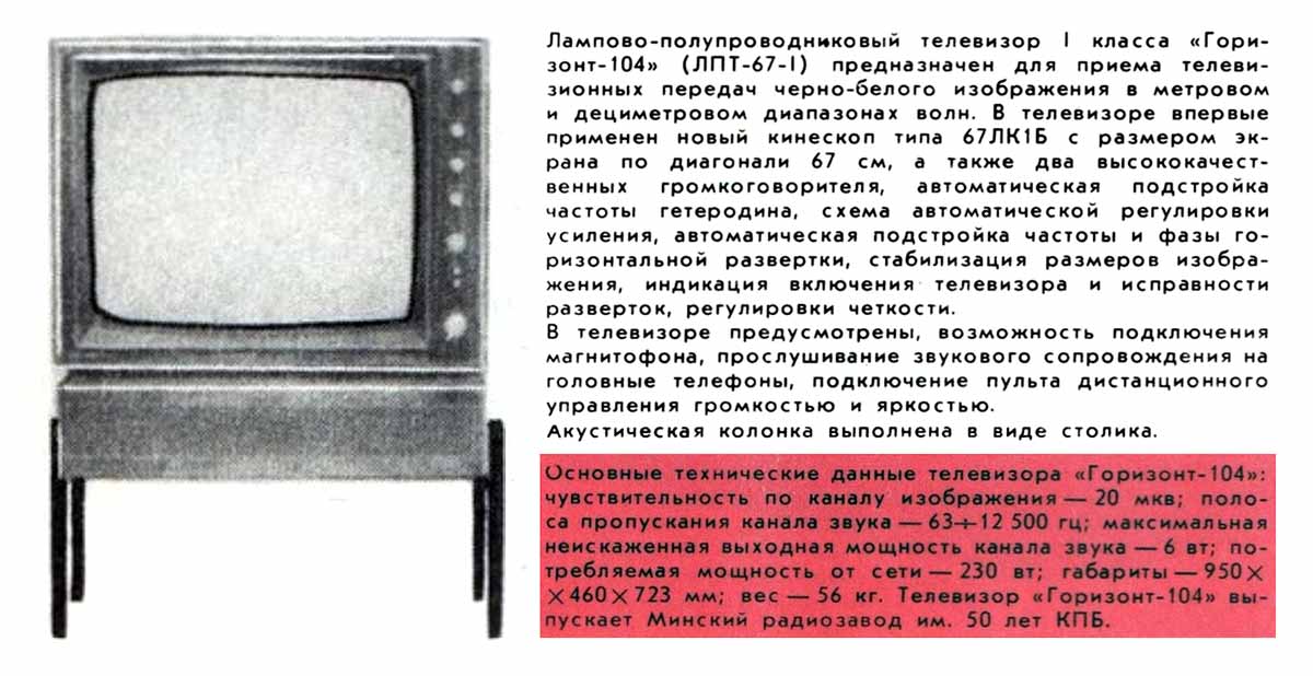 летия КПБ. Лампово-полупроводниковый телевизор 1 класса ''Горизонт-104''