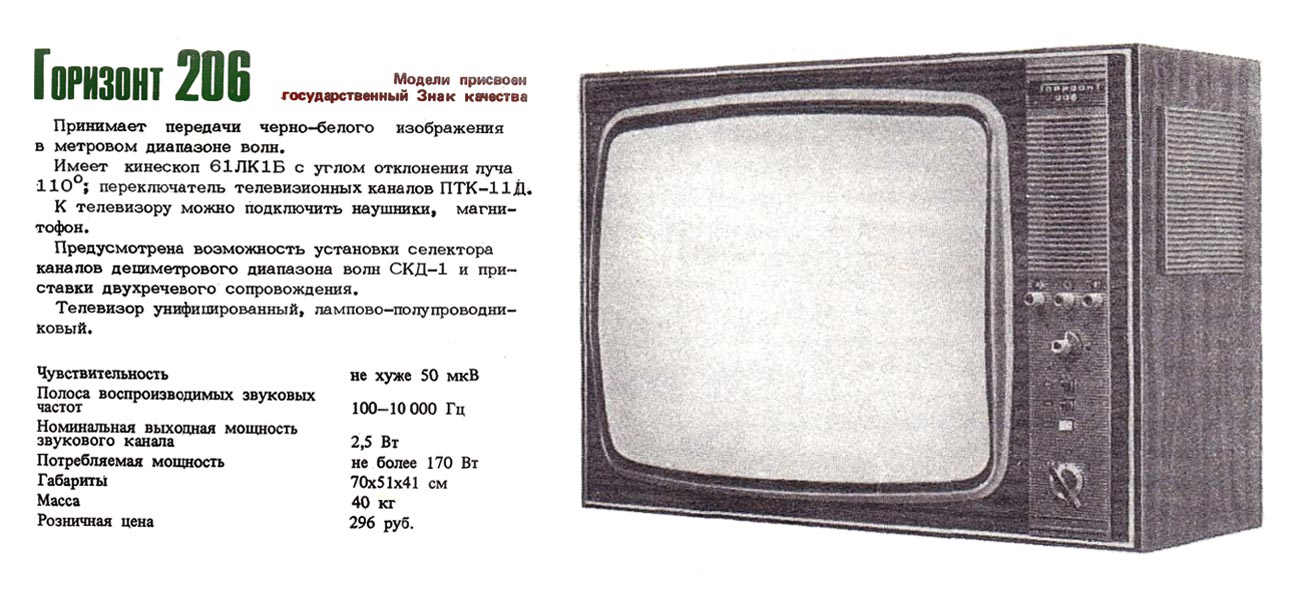 Минское ПО "Горизонт". Телевизор обеспечивает приём на любом из 12-ти каналов