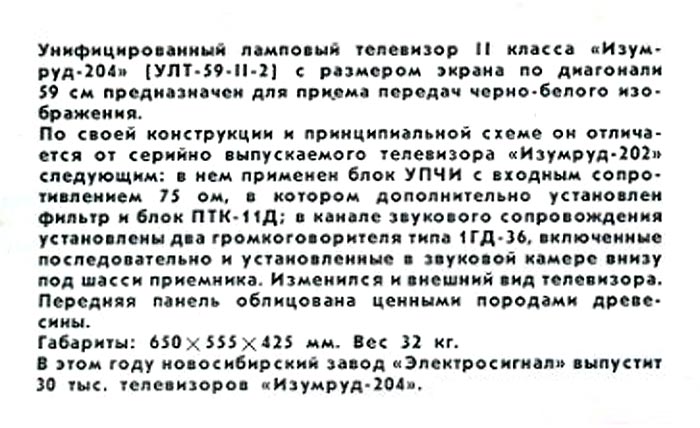 телевизор ''Изумруд-204'' (тип УНТ-59-II-1) является аналогом телевизора