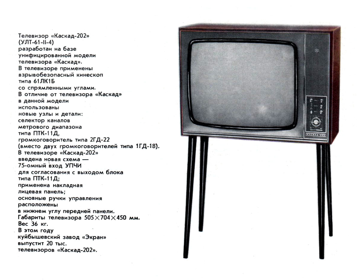 передней панели от него не отличались. Унифицированные телевизоры ''Каскад-202'',