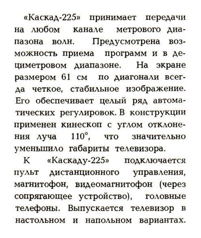 Выпускался в настольном и напольном исполнении. Телевизор ''Каскад-225Д''