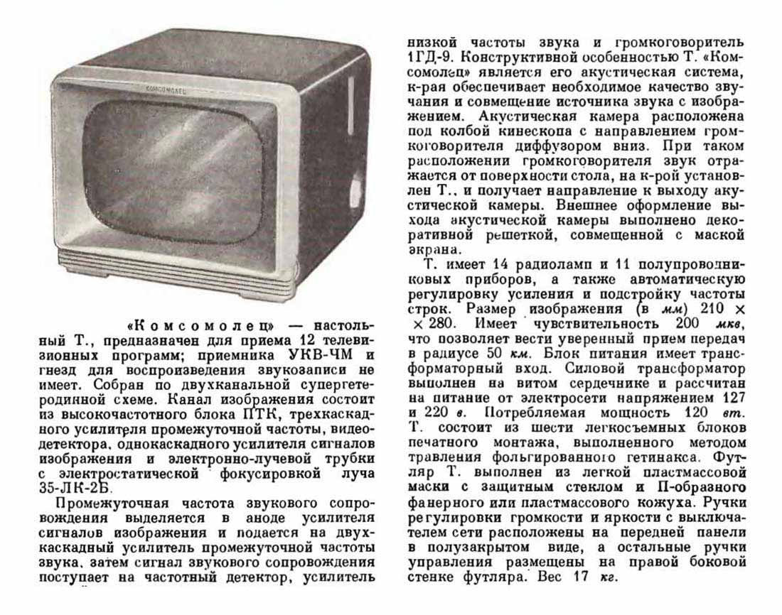 мм. Масса - 16,5 кг. Телевизор "Комсомолец выпускался в двух вариантах