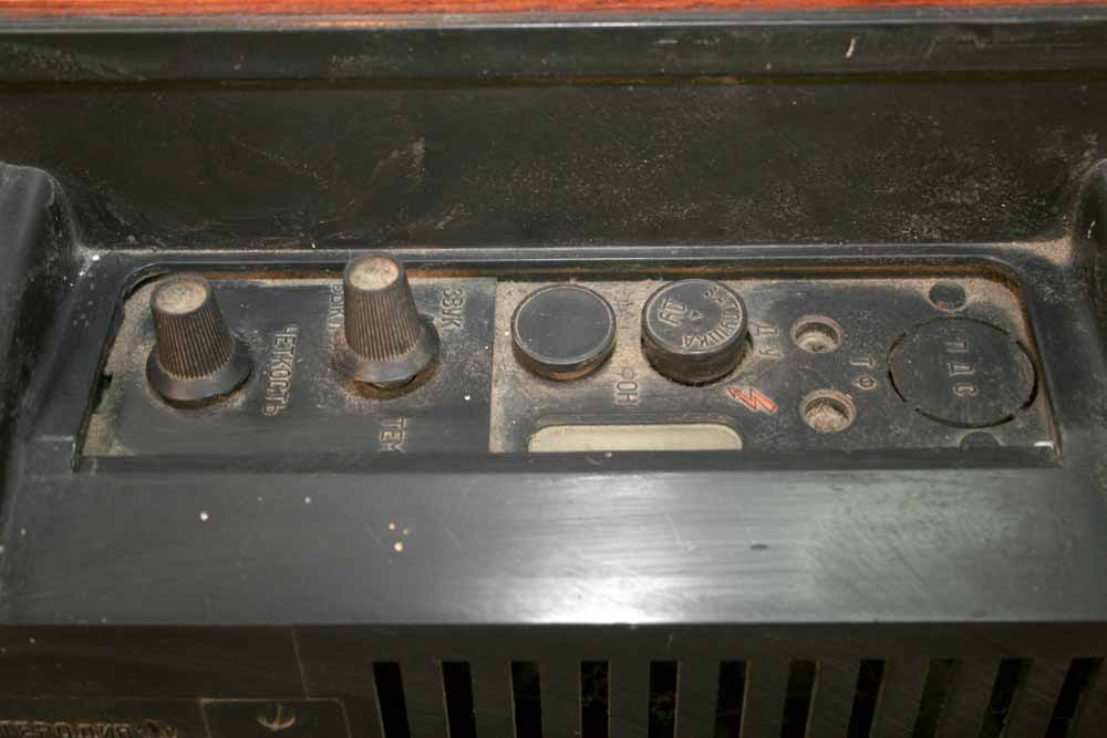 породами дерева и пластмассой. Телевизор работает на любом из 12-ти каналов.