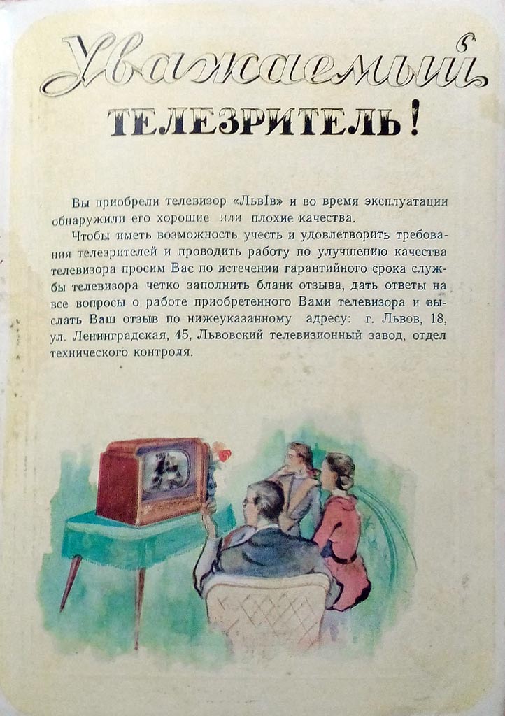 выпускал Львовский телевизионный завод. Сетевой ламповый телевизор ''Львов''