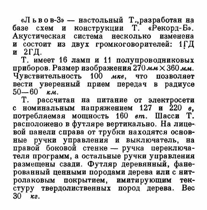 изображения "Львов-3" с 1960 года выпускал Львовский телевизионный завод.