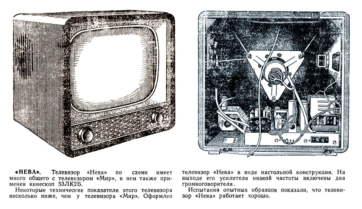 ''Мир''. Телевизор ''Нева'' серийно производился с середины 1956 года.