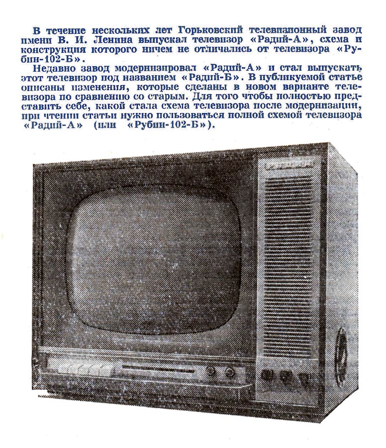 завод имени Ленина. Телевизор ''Радий-Б'' является модернизированным вариантом