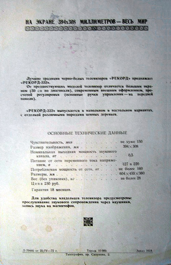 "Рекорд-333" с 1972 года выпускал Александровский радиозавод. Завод почти